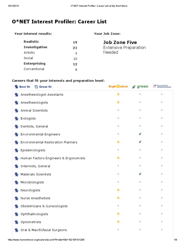 The thoughts and feelings that you had while taking the profiler can offer valuable information about the accuracy of your scores. Department of labor, employment and training administration. And developed by the national center for o*net development: The development of the o*net interest profiler was directed by phil lewis and. This site incorporates information from o*net web services by the u.s. Results are holland codes used in career counseling. My next move is sponsored by the u.s. The o*net interest profiler can help you find out what your interests are and how they relate to the world of work. In this report, i will share my career choice and enlighten you about why i chose such profession. Now that you've learned about holland's interest type system and taken the o*net interest profiler, it's time to interpret your profiler results. We'll suggest careers that match your interests and training. Job seekers can also find local salary information, training opportunities, and even job. We collect occupation data and provide free applications for career exploration.